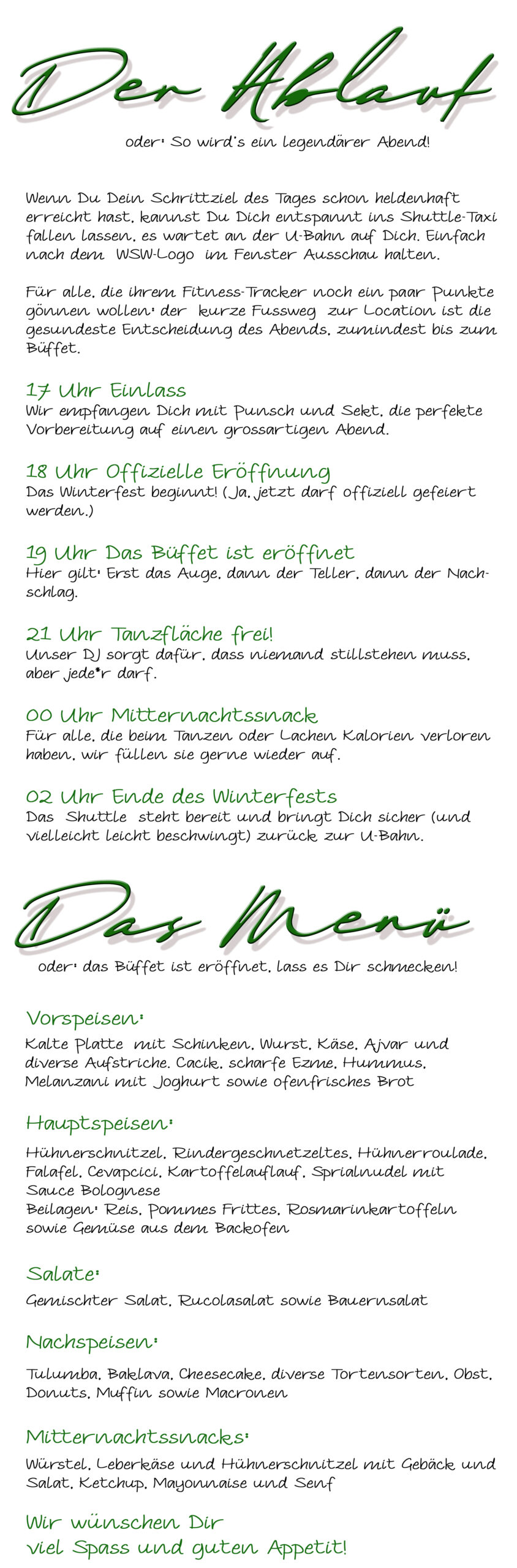 Winterfest 2025 – Ablauf und Menü